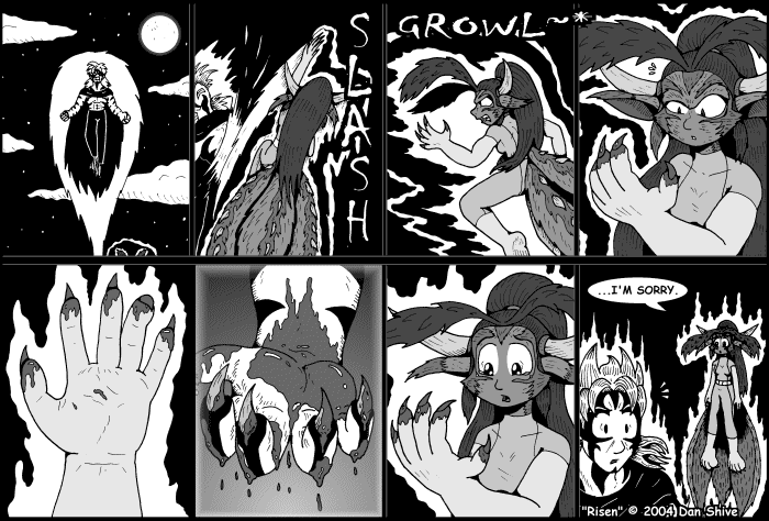 This is pretty much how every fight I've been in has gone. I transform, tackle them through a wall, fight for a bit, they fly into the air, I follow, and--Wait, wait, only the "quickly loses the desire to fight" part is familiar. I don't THINK I've done those other things? It's been a while since I've gotten into a fight.