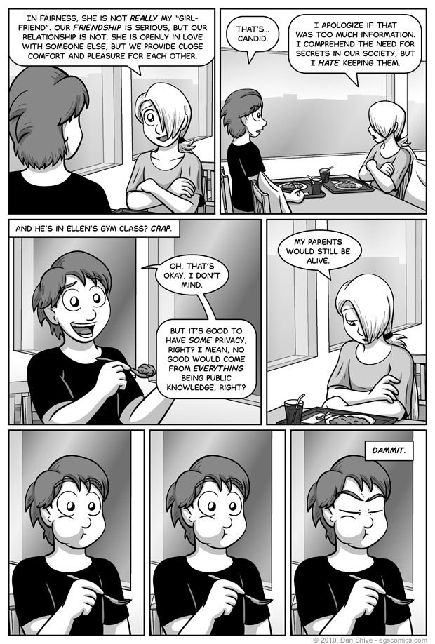 Good timing on finally stuffing your face with food, Elliot! Yeesh. Now swallow and do something about the lingering awkwardness.