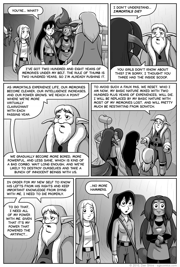I'm thinking of things to comment on that won't naturally turn into serious commentary regarding mortality and the like, and I don't particularly feel up for that just now, so... hm. You think long-eared immortals and Grace ever accidentally hit people in the face with their ears? They appear to extend past the shoulders, so it's certainly possible.