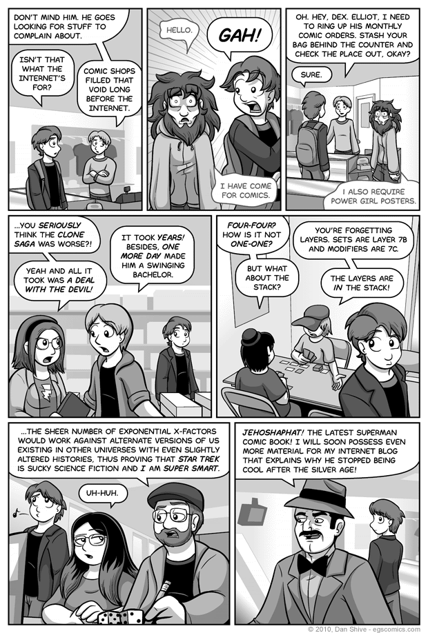 Panel 6 - The reason this is in reference to Star Trek is multiple instances of parallel universes and the many, many logic errors one can nitpick about them. Nonetheless, I wuv those episodes, and would only make the same claim as my doppelganger here in jest.