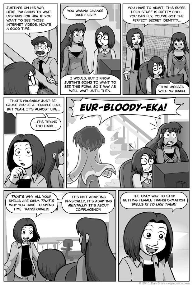 Back in Sister 2, it was said that Elliot needed to spend time transformed if he wanted to stop getting girly spells. Back in Indiana Elliot and The Temple of Swedish Furniture, Tedd was working with Elliot to try to learn more about magic and figure out how to speed up the process of getting non-girly spells and stopping the excess energy buildups.
