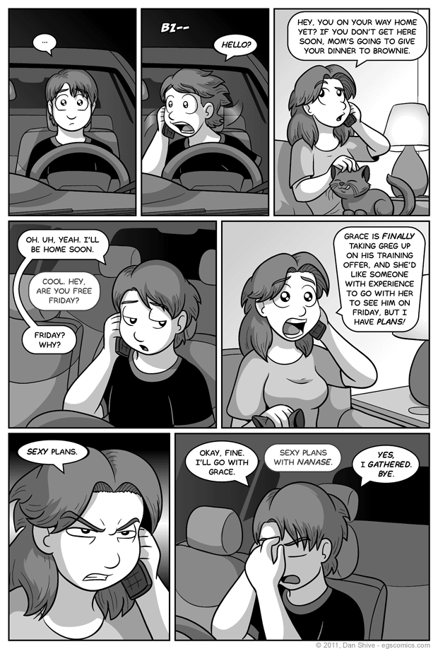 In Ellen's defense, pointing out that Nanase would also be preoccupied eliminates Nanase as a potential Grace-companion as well, and you can bet dollars to donuts that Justin's working, so that really would leave Elliot. In not-so-much Ellen's defense, who else would Ellen have such plans with?