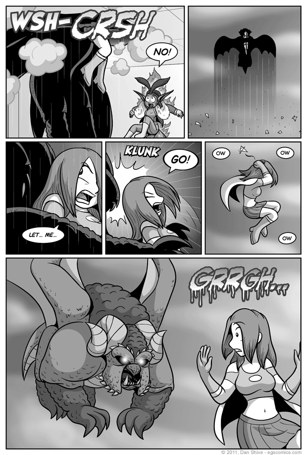 I...I'm not good at drawing things bursting upward through ceilings. I'm really not. I assume there are dedicated classes to this art, but for not, huge sound effects and dust clouds are my "this sort of words" method of choice.