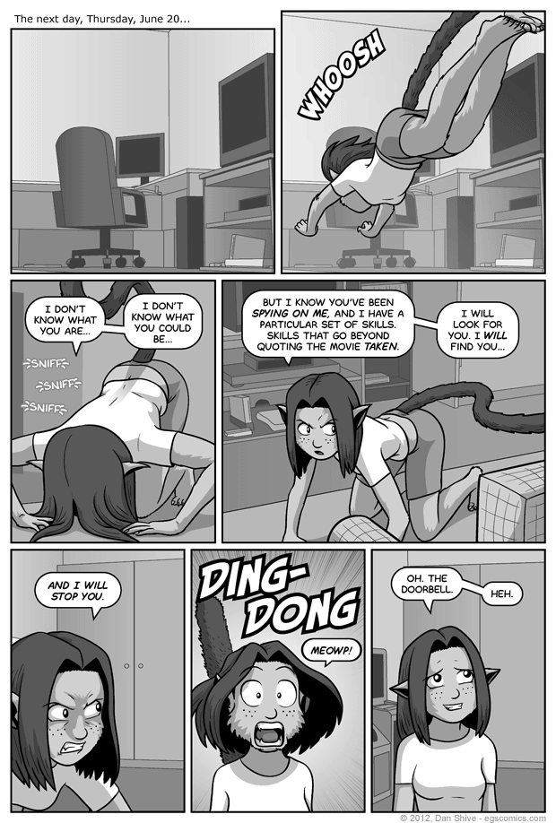 - Spied on #1- Spied on #2 - "I wouldn't be able to notice anything that could get around the defenses my dad set up."The last date narration caption said it had been Monday, but as mentioned in a previous commentary, I attempted to imply a passing of days via background characters changing clothes between