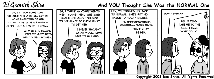 Okay, so I guess Sarah really wasn’t hanging around Tedd’s house all that much. Mr. Verres really must have chosen her because she’s a girl Tedd knows and only that reason. I guess that’s the only criteria necessary to not raise eyebrows while shopping for women’s clothing, at least.