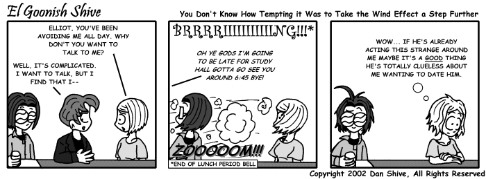 So… Little… Happening! I’m not being critical of the comic in saying so. It’s just that it puts me in an awkward position over a decade later because this particular comic is only three panels long and there’s not much for me to comment on, and this? THIS. IS. COMMENTARY!