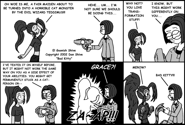 "Hey Tedd, I can turn into a squirrel, and my brothers transform into animals, too! I think they're dangerous, though, and you're a mad scientist, so... Can you maybe look into making them less dangerous somehow?"