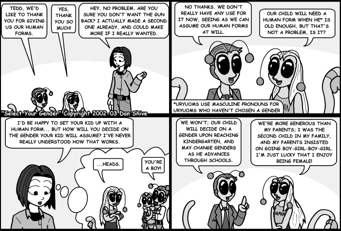 When I first posted this comic, someone was of the opinion that it was too political, and I had no idea what they were talking about. I didn't even realize they were talking about this comic. I assumed they were talking about earlier when I was very blatantly saying "yay separation of church and state" and had to be corrected, and even after that I was confused.