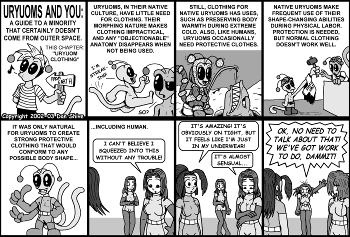 I’m pretty sure the reason for the introduction of Uryuom worker suits was so Grace could shapeshift without clothing being an issue. I’m not sure if it was my mind demanding a reason for these to exist, a desire for an excuse for Ellen and Nanase to wear them, or both that resulted in them being a sort of lightweight armor (probably both).