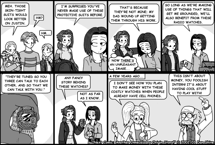 Panel two is definitely a bit of lampshading (as in drawing direct attention to something that one may find questionable in a story), though it still wouldn’t explain why Tedd didn’t let William and Gillian use them. I mean, yeah, he’d have to ask his dad’s permission, but why would he say no? He’d probably make an extra effort to make sure they were readily available for that.