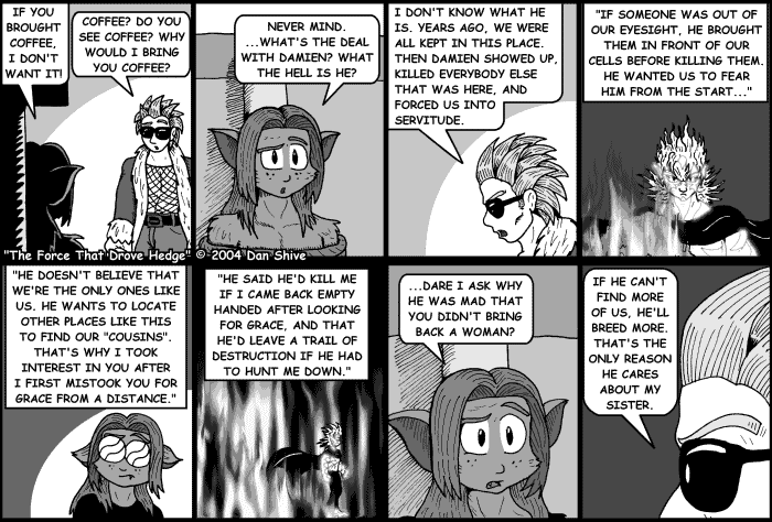 Damn. Damien’s a JERK. And Hedge is a bit less of a jerk. Yay Hedge.