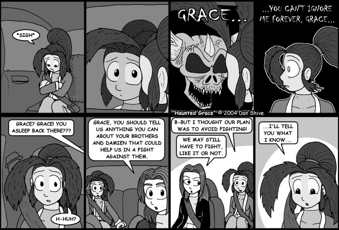In all seriousness, that skull has to do with something I'd vaguely planned since the beginning, and I DO mean "vaguely". Grace's origins changed drastically, and I can't even remember what exactly that skull was originally supposed to represent. I'm guessing a variation of the same general thing, but I never wrote it down, and I can't recall specifics beyond, well, super vagueness.