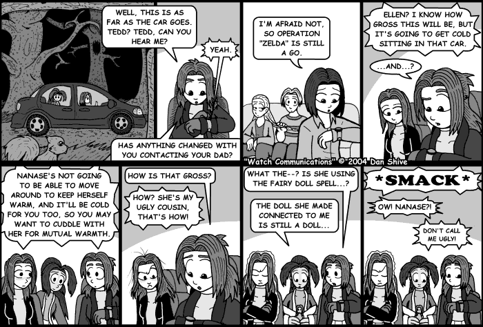 It occurs to me that cell phone reception might not be good in those woods, and maybe that would be a reason to use the watches. That raises the question of why the watches work super rad when cell phones don't, but they were invented by Doctor Germahn, so one really shouldn't question it. His inventions just sorta work, darn it.