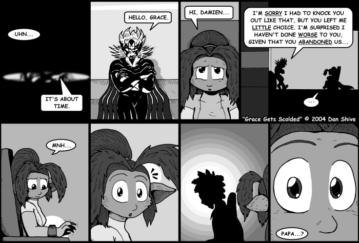 Grace has the ability to grow smaller by turning into a squirrel, so one might wonder why she doesn't just get loose that way. I very briefly considered it myself just now, but the answer is actually pretty obvious once one considers that the transformation is more process than "poof". She could really hurt herself trying to escape that way.