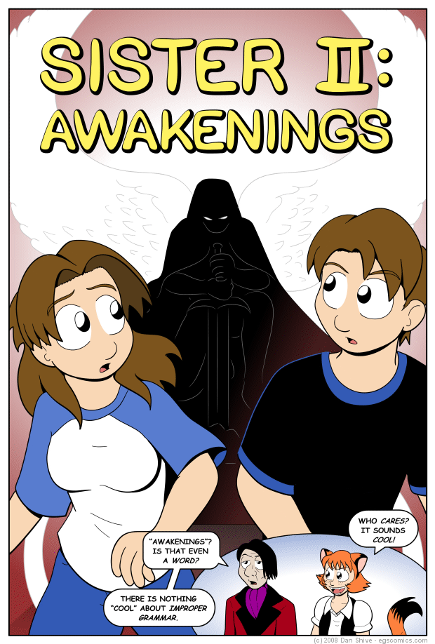 "Awakenings" most likely is some manner of word, but hey, Mr. Raven is a history teacher. He don’t need to speak English good.! …ok, he does, but I enjoy his mocking my title. This cover harkens back to ye olde days of EGS when there would be exciting splash pages for certain storylines and arcs. I don’t intend to have a cover for every part of this story arc, but I felt it needed to at least begin with one. Why is Catalina a cat girl on this cover? Is this some incredible sign of what awaits us within this story arc?! Or did I just want to draw her as a cat girl? YOU DECIDE! …once you’ve read the story and it’s decided for you.