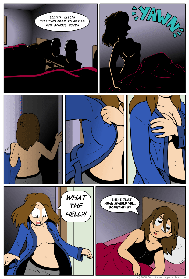 Ok, no, that's a lie. The REAL edit is that I made the hallway colored differently from Elliot and Ellen's room. In the original version, it looked like Elliot had stayed in the room, but was inexplicably better lit for some reason. I hope this should make it clear that Elliot has left the room and did not simply put on the robe.