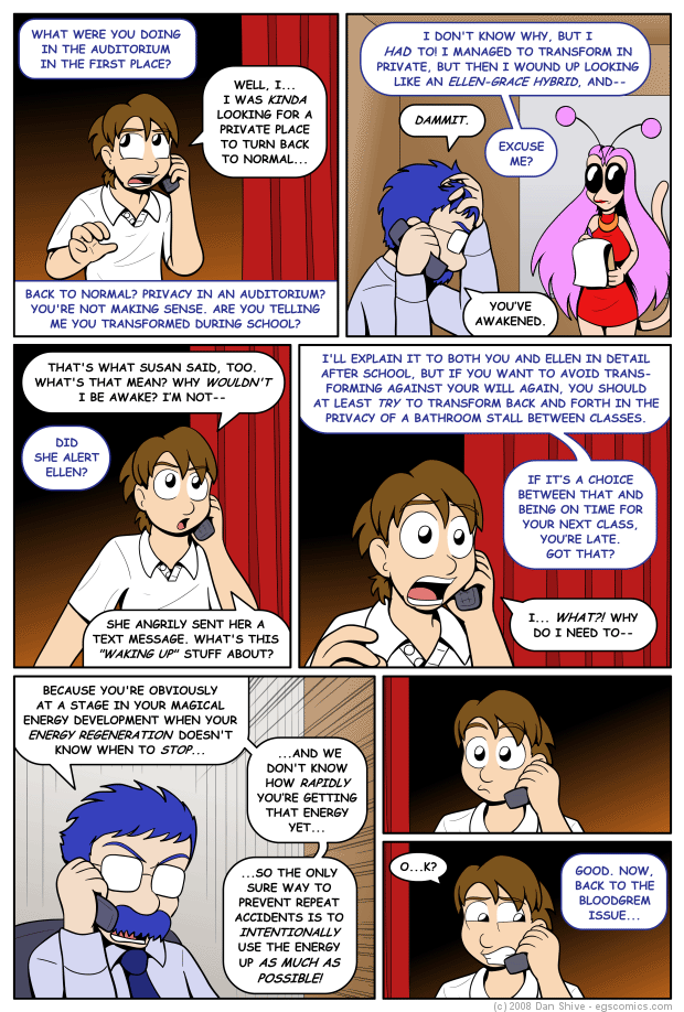 The ending of this page is intentionally very similar to part of an [[2008-08-19|earlier page]] where Susan snapped at Elliot. Mr. Verres is a bit more reserved than Susan, however, and is more annoyed with himself for not seeing this coming than he is at poor Elliot. I say "poor Elliot" because he's confused, possibly a little scared, and just wants some clear answers.