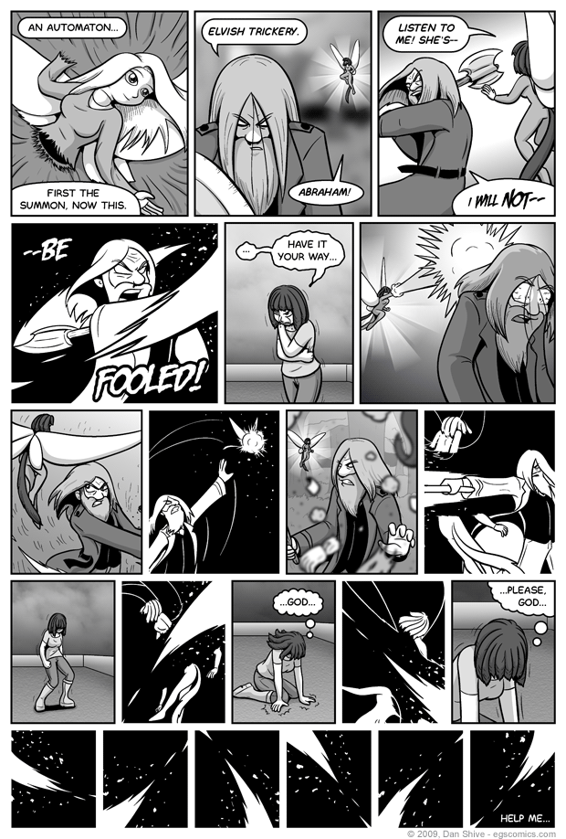 In the original script, it wasn't clear enough what was going on in Abraham's head and why he had no trepidations about violently destroying fairy after fairy. To clarify, there was no dialogue from him whatsoever. This was one of the issues I realized I needed to address, not because I'm worried about Abe being presented in a negative light, but because it would be out of character for him to behave in such a way without a hastily assumed rationalization.