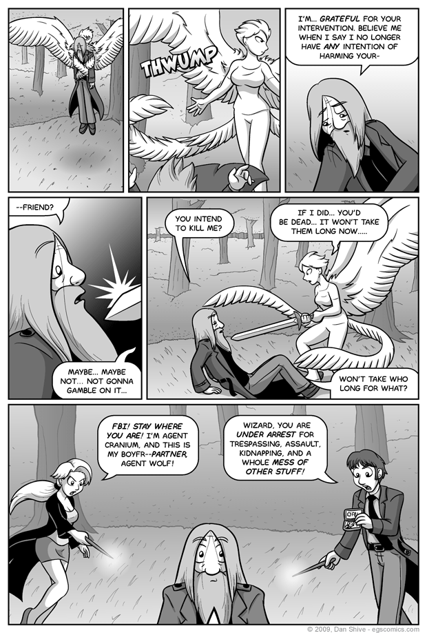 I love panel two. Dramatic moment followed by "thwump"; it's the circle of life.