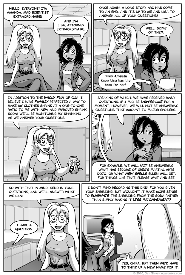 What Lisa says in panel four is accurate, and many questions I have received have been of the nature "what's going to happen next". Such questions will not be answered in this Q&A. What happens next is happening next, so why spoil it here in the Q&A?