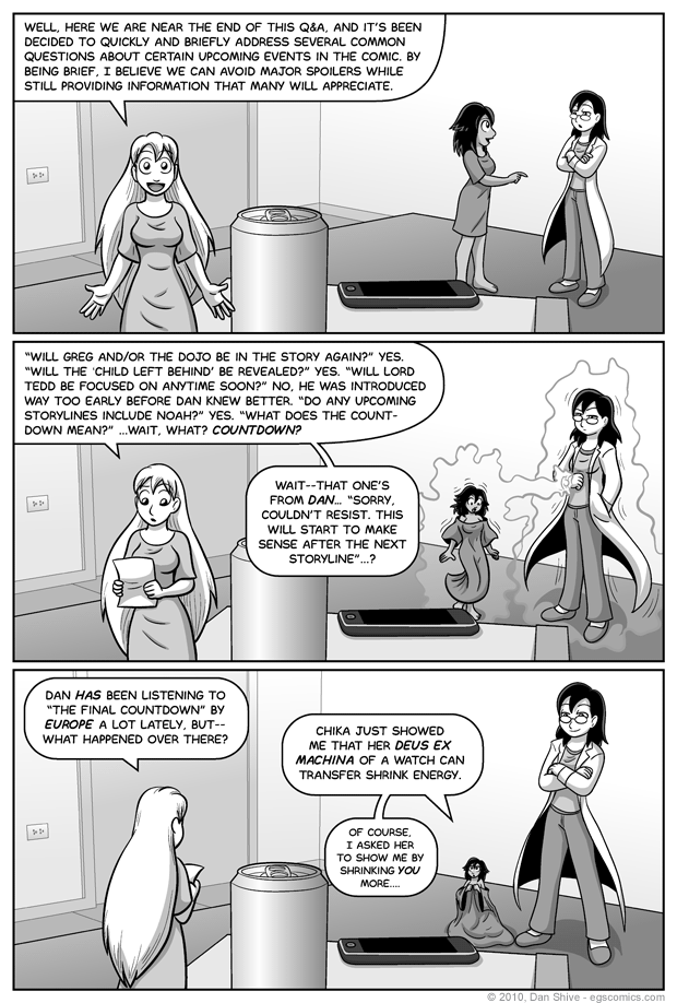 El Goonish Shive Introductions The Goo Shade, Part 1 Q&A #1 Shade, Part 2 Relations, Part 1 April Fools Week Relations, Part 2 Catnip Sister Part 1 - Open The Box Part 2 - Read The Rules Part 3 - Set Up The Pieces Part 4 - Play The Game Part 5 - Knock The Board Over Part 6 - Scattered Pieces Part 7 - Fist Fight Part 8 - Clean Up New And Old Friends Flipping Cardboard Lady Mysterious II slooF lirpA Squirrel Diplomacy Lunchtable Revelations Night Out Part 1 - Martial Arts Crew Part 2 - Elliot's Crew Part 3 - Ellen's Crew The Morning After Q&A #2 Tam Eh Tedd Painted Black Part 1 - Walk In The Park Part 2 - Missing Persons Part 3 - Interviewed By The Devil Part 4 - Into The Dungeon Part 5 - The Truth About Grace Part 6 - The Brewing Storm Part 7 - Fallen From Grace Part 8 - Humanity PB Special Features Shadows After Dark Sleepy Time Second Life The Child Left Behind Red Alert Before The Party Moping Squirrel Intro to South Party Recruiting Even More Recruiting Party Fashion Family Reuinion Grace's Birthday Party Part 1 - Arrivals And Presents Part 2 - Bending Genders Part 3 - Festivities Part 4 - Hold On Hope The After Party Q&A #3 Hidden Genesis Hidden Genesis In The Shadows The New Students Susan Draws The Line Squirrel In The Classroom Sister 2 Part 1 - The Trials Of Susan Part 2 - The Statue Part 3 - Pent-Up Magic Part 4 - Evil Monkey Part 5 - Moperville News Part 6 - Weregirl Part 7 - The Dark Clouds Gather Part 8 - Talon vs. Scythe Part 9 - Wrath of God Part 10 - Pandoras Box Q&A #4 Q&A #4 Bringing Silly Back Indiana Elliot And The TOSF T-Minus The Demon Ally Hammerchlorians - 1 Hammerchlorians - 2 Hammerchlorians - 3 T-Minus Dark Allegiance New And Old Flames - 1 New And Old Flames - 2 New And Old Flames - 3 New And Old Flames - 4 New And Old Flames - 5 New And Old Flames - 6 Q&A #5 Q&A #5 9001% Serious One Way Road Legends of Celida Death Sentence - 1 Death Sentence - 2 Death Sentence - 3 Death Sentence - 4 Death Sentence - 5 What Is Love Summer The End Of Spring Power Fantasy Rocks Fall Nobody Is Hired Nepotism Hair By The Numbers Duel Of The Discs There Be Whales Here There Be Whales Here Pt 2 There Be Whales Here Pt 3 The Dawn End Of An Era End Of An Era pt 2 Family Tree Family Tree Part 2 - Arrival Family Tree Part 3 - Par-TAY Family Tree Part 4 - Weirdness Family Tree Part 5 - A Troll Family Tree Part 6 - Banhammered Family Tree Part 7 - Hangover Q&A #6 Identity Identity Part 2 - Reactions Identity Part 3 - Cat Attack Identity Part 4 - Detective Sarah Identity Part 5 - Basement Chat Identity Part 6 - ILLOGICAL! Identity Part 7 - Dreams identity Part 8 - Ashley Identity Part 9 - Detective Susan Identity Part 10 - Ashley and Elliot Identity Part 11 - Epilogue Summer Moments Guest Comics Guest Comics #1 Guest Comics #2 Pandoras Box Squirrel Prophet SP - Part 2 SP - Final Battle So A Date At The Mall So A Date - Part 2 So A Date - Part 3 So A Date - Part 4 So A Date - Part 5 EGSNP - Question Mark Q&A 7 - The Requestioning Sister 3 - Catspaws Part 1 - Legacy Part 2 - The Will of Magic Part 3 - Reply Hazy Part 4 - Everyone Needs To Talk Part 5 - The Reservoir Part 6 - Maybe Sisters Part 7 - An Unkindness Part 8 - Awkwardness Ahead Part 9 - Traffic Freeze Part 10 - Fluidity Part 11 - All Of The Curse Words Part 12 - Misanthropy Part 13 - In Search Of Wisdom Part 14 - Sister Anxiety Part 15 - Elliot and Ellen Part 16 - BFFs Part 17 - Great Fairy Godmother Part 18 - Gathering Monsters Part 19 - Family Meetings Part 20 - Geminis Part 21 - The Other Dunkel Part 22 - Apocalypse Part 23 - The Fate Of Magic Part 24 - Elliots And Ellens Part 25 - Changes Part 26 - Epilogues The New World The Legend of Diane The Secret of Sam Q&A 8 - The Lord Of The Q&As Title Pending Title Pending 2 - Even More Pending Title Pending 3 - Untitled Party Title Pending 5 or 6 Balance Part 1 Part 2 Part 2-B Part 3 Part 4 Part 5 Part 6 Part 7 Part 8 Part 9 The Road Ahead Brother Father Our Future Recruitment Layers, Part 1 Layers, Part 2 Layers, Part 3 Layers, Part 4 Hope, Part 1 Hope, Part 2 Hope, Part 3 Hope, Part 4 Hope, Part 5 Hope, Part 6 Hope, Part 7 Hope, Part 8 Hope, Part 9 Hope, Part 10 Hope, Part 11 Hope, Part 12 False Kings False Kings, Part 1 False Kings, Part 2 False Kings, Part 3 False Kings, Part 4