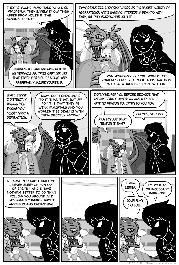Speaking of which, I mentioned "disturbing implications" in the commentary of the previous comic. The theories that burst forth from this vague statement wound up inspiring a