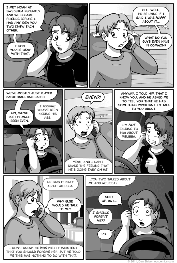 here it is again), but Noah has not been showing off his abilities at school, hence Justin's utter shock that Noah could be an equal for Elliot. Elliot's own assertion that Noah is going easy on him is supported by Noah in that same comic, but maybe he's just a horrible braggart, that Noah!