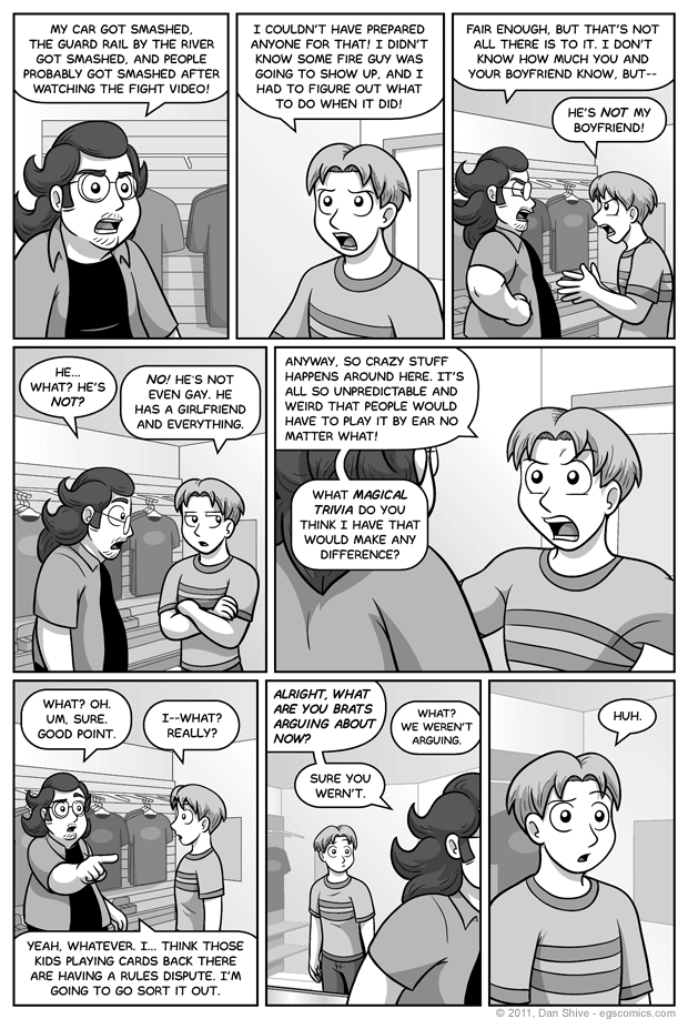 This doesn't really have anything to do with the comic, but writing the above reminded me of a time in school when we had a group project to make our own board game, and someone suggested incorporating something that would "shock" players. A girl in our group who wasn't fluent in English interpreted it as "surprising" the player, and I wound up having to mimic being electrically shocked to get her to understand what was actually being suggested. She thankfully agreed with me about it being a bad idea.