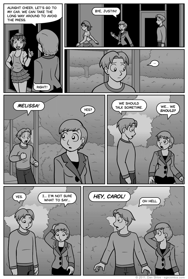 opinions regarding Party Elliot's outfit in the previous comic, and I got a lot of helpful responses. Thank you! Not everyone agrees, of course, but the majority of responses were positive, and the most common criticism was simply about the shoes and/or socks. I'm sure someone out there hates the outfit, but they've yet to bother e-mailing me about it.