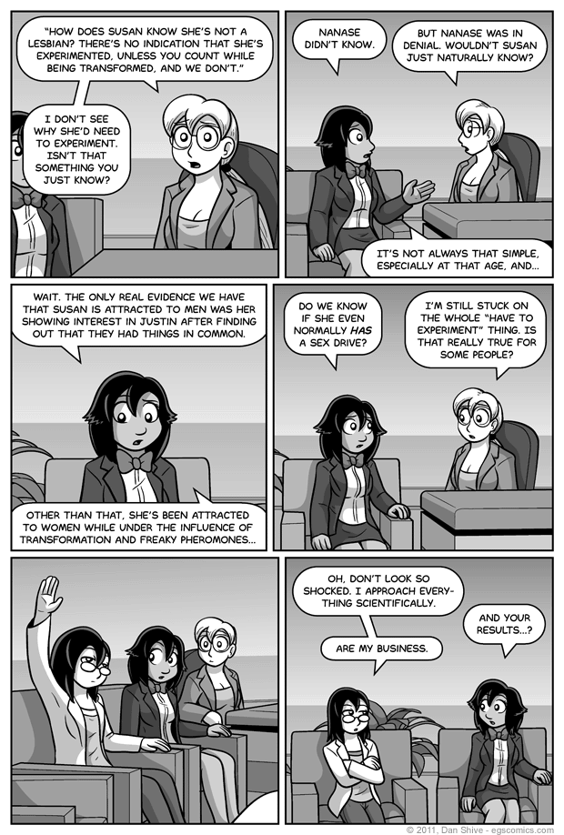 Nonetheless, I of course know with certainty what Susan's orientation truly is, because I am never caught off guard by my own characters!