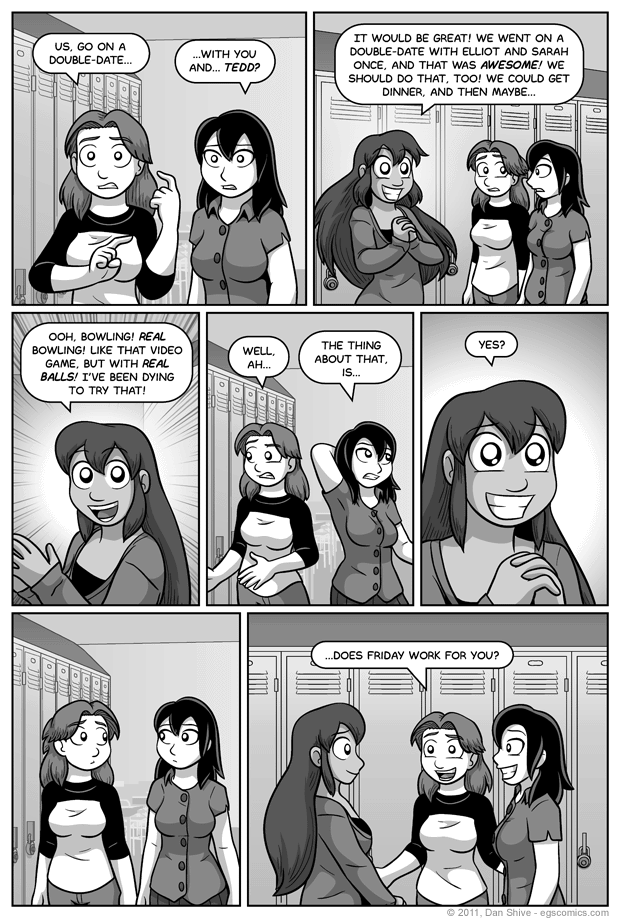 Trust me when I say I'm not trying to be trendy with thinly veiled jokes about Wii Bowling. For one thing, I think that would impossible in 2011. For another, it fits Grace's character that she's more familiar with a simulated version of such a thing. For a third, GET OFF MY CASE!