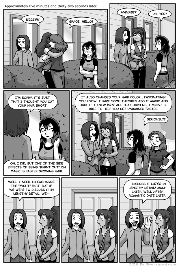 I originally had Tedd reacting to Ellen and Grace hugging. Then I remembered that was completely contrary to Tedd's state of mind, the storyline and everything between, so I smacked myself upside the head and fixed it.
