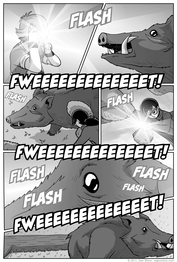Without initially realizing why it was poorly phrased, the direction I wrote in my script for panel four of this comic was "Rhoda joins in on the flashing". It's a good thing I'm the only one who has to work from my scripts, or who knows what we might've ended up with.