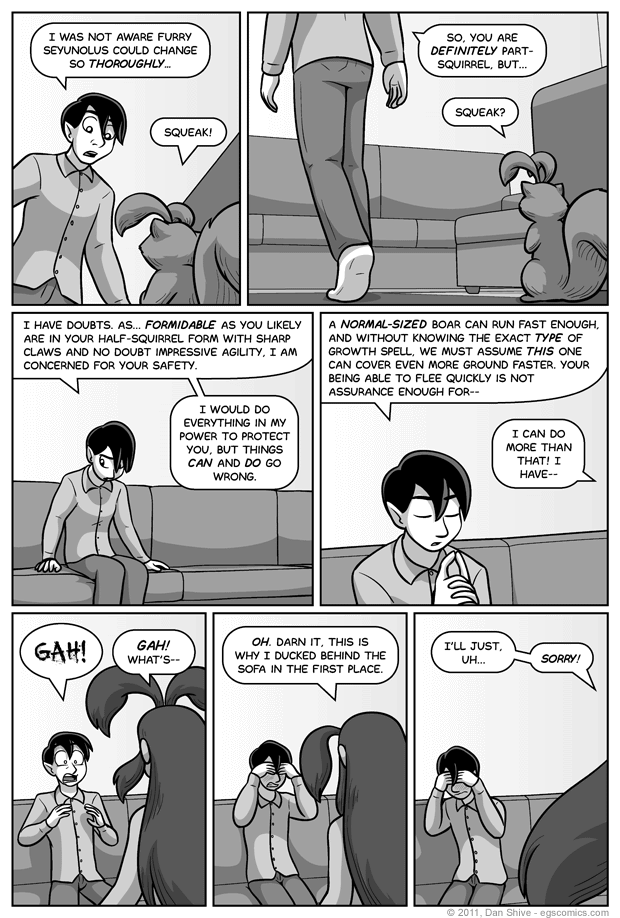 failed.I enjoy the opportunity to draw scenes with characters who are largely different in scale, even if it is more difficult to do so. The angles aren't seen very often, and in the case of characters becoming small, normal-sized objects can become massive. It's a fair amount of fun.