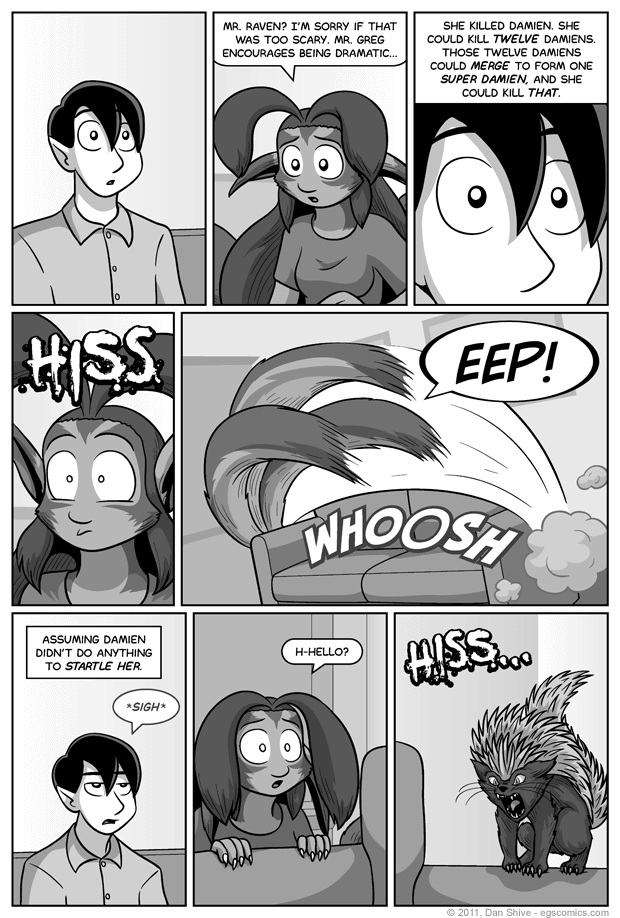 diving for cover. Now she just has to launch something into orbit... I hope that's not the next comic. Only Raven and that cat are nearby, and I don't think either of them would care for orbit.