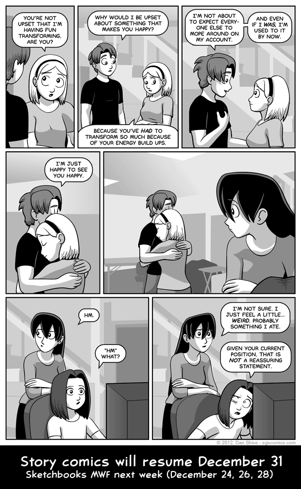 - Concern over Elliot taking offenseI'm *sort* of taking a holiday break next week. I say sort of because I'm going to continue work on the comic in general, but am only going to be posting sketchbooks on Mon-Wed-Friday. I would list all the various reasons I decided to do this, but Christmas and time with family and all that sentimental mumbo-jumbo is the ultimate excuse! It's all legit so long as someone puts on a santa hat and there's a tree with stuff on it nearby.