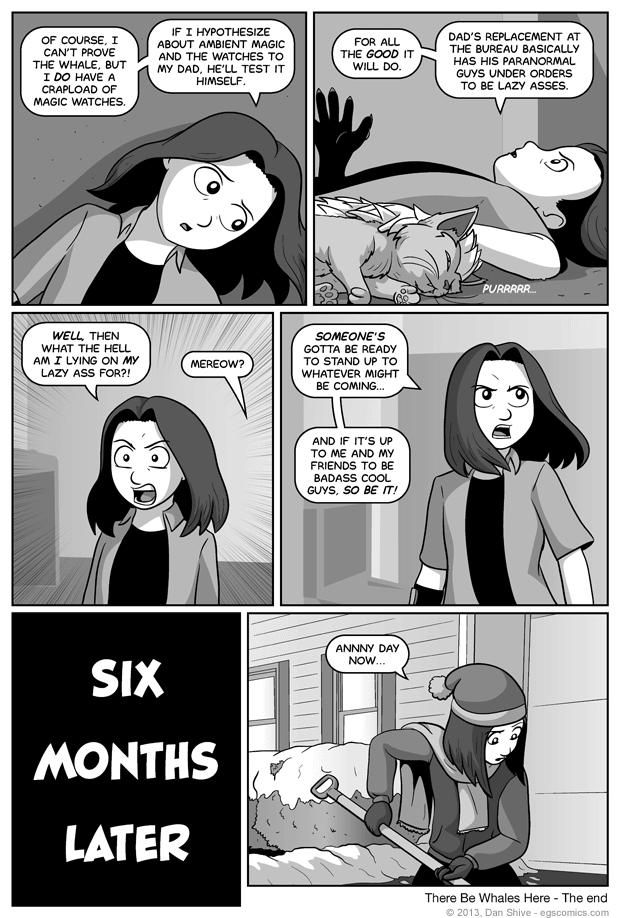 Incidentally, the first panel is why I told people to wait until this update to yell at Tedd about his decisions regarding what to tell people. Granted, the six month gap means it's really not clear what all he's told his friends and family just yet, but at least it's a safe bet he's at LEAST let people know about the whole ambient magic dealie.