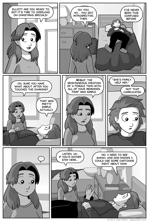 When Elliot can say he's never been so confused before without hyperbole, you just know you're dealing with a man who's powerful confused. Seriously. Consider the depths of confusion Elliot has faced both on and off panel in his lifetime. We're talking more confused than any cat I have ever known, and I have known some POWERFUL confused cats.
