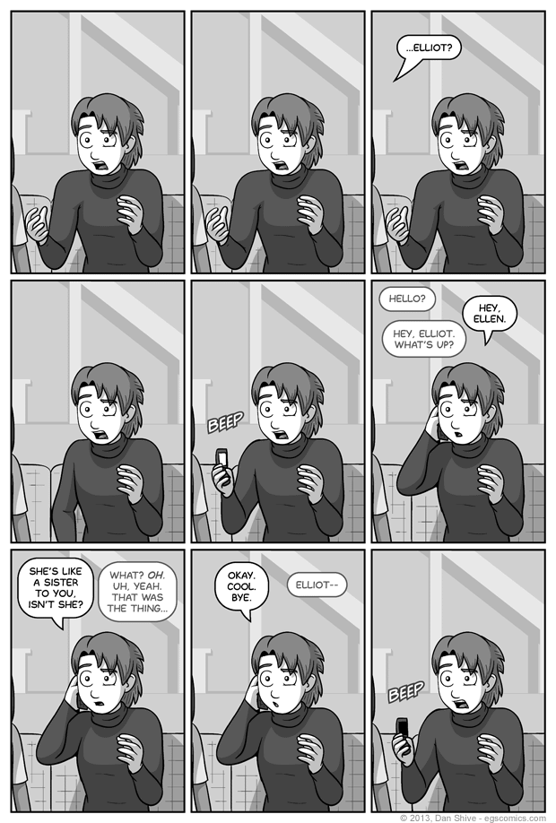 - "You might have noticed I got over not being with Sarah rather quickly..."- "You'll fight it if someone else tells you."Next week: 45 more panels of this.