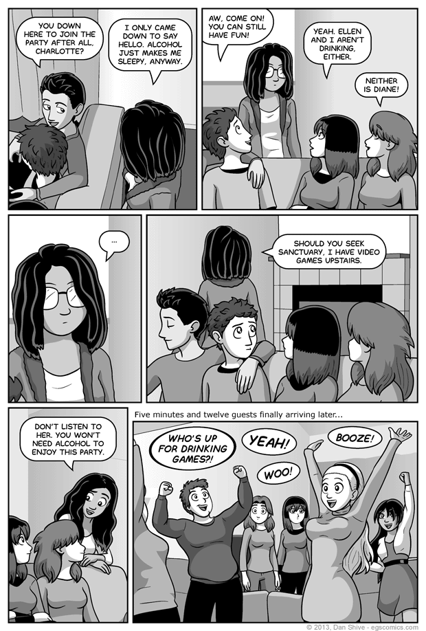 I'm in pretty much the same boat as Charlotte when it comes to drinking. And parties. And having to wear glasses... I'm veering off course. I'm sure it has other effects, too. I've never known anyone whose behavior doesn't at least change in subtle ways when drinking. That doesn't change the fact that being conscious of only the sleepy part isn't much of an incentive.