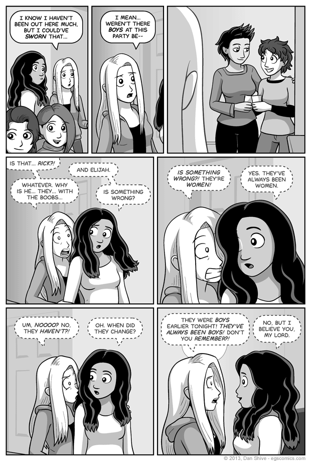 And before anyone asks, Diane's that close to Rhea in this comic because, dude, have YOU tried whispering to someone at a party? I usually have to use my "holy crap Dan can actually talk loud when he wants to" voice at those sort of things. It's the same voice I use when ordering chicken at the mall, for all of the peoples must know how I want my Teriyaki.