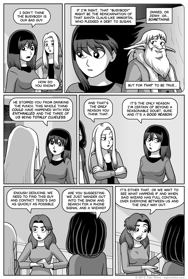 El Goonish Shive Introductions The Goo Shade, Part 1 Q&A #1 Shade, Part 2 Relations, Part 1 April Fools Week Relations, Part 2 Catnip Sister Part 1 - Open The Box Part 2 - Read The Rules Part 3 - Set Up The Pieces Part 4 - Play The Game Part 5 - Knock The Board Over Part 6 - Scattered Pieces Part 7 - Fist Fight Part 8 - Clean Up New And Old Friends Flipping Cardboard Lady Mysterious II slooF lirpA Squirrel Diplomacy Lunchtable Revelations Night Out Part 1 - Martial Arts Crew Part 2 - Elliot's Crew Part 3 - Ellen's Crew The Morning After Q&A #2 Tam Eh Tedd Painted Black Part 1 - Walk In The Park Part 2 - Missing Persons Part 3 - Interviewed By The Devil Part 4 - Into The Dungeon Part 5 - The Truth About Grace Part 6 - The Brewing Storm Part 7 - Fallen From Grace Part 8 - Humanity PB Special Features Shadows After Dark Sleepy Time Second Life The Child Left Behind Red Alert Before The Party Moping Squirrel Intro to South Party Recruiting Even More Recruiting Party Fashion Family Reuinion Grace's Birthday Party Part 1 - Arrivals And Presents Part 2 - Bending Genders Part 3 - Festivities Part 4 - Hold On Hope The After Party Q&A #3 Hidden Genesis Hidden Genesis In The Shadows The New Students Susan Draws The Line Squirrel In The Classroom Sister 2 Part 1 - The Trials Of Susan Part 2 - The Statue Part 3 - Pent-Up Magic Part 4 - Evil Monkey Part 5 - Moperville News Part 6 - Weregirl Part 7 - The Dark Clouds Gather Part 8 - Talon vs. Scythe Part 9 - Wrath of God Part 10 - Pandoras Box Q&A #4 Q&A #4 Bringing Silly Back Indiana Elliot And The TOSF T-Minus The Demon Ally Hammerchlorians - 1 Hammerchlorians - 2 Hammerchlorians - 3 T-Minus Dark Allegiance New And Old Flames - 1 New And Old Flames - 2 New And Old Flames - 3 New And Old Flames - 4 New And Old Flames - 5 New And Old Flames - 6 Q&A #5 Q&A #5 9001% Serious One Way Road Legends of Celida Death Sentence - 1 Death Sentence - 2 Death Sentence - 3 Death Sentence - 4 Death Sentence - 5 What Is Love Summer The End Of Spring Power Fantasy Rocks Fall Nobody Is Hired Nepotism Hair By The Numbers Duel Of The Discs There Be Whales Here There Be Whales Here Pt 2 There Be Whales Here Pt 3 The Dawn End Of An Era End Of An Era pt 2 Family Tree Family Tree Part 2 - Arrival Family Tree Part 3 - Par-TAY Family Tree Part 4 - Weirdness Family Tree Part 5 - A Troll Family Tree Part 6 - Banhammered Family Tree Part 7 - Hangover Q&A #6 Identity Identity Part 2 - Reactions Identity Part 3 - Cat Attack Identity Part 4 - Detective Sarah Identity Part 5 - Basement Chat Identity Part 6 - ILLOGICAL! Identity Part 7 - Dreams identity Part 8 - Ashley Identity Part 9 - Detective Susan Identity Part 10 - Ashley and Elliot Identity Part 11 - Epilogue Summer Moments Guest Comics Guest Comics #1 Guest Comics #2 Pandoras Box Squirrel Prophet SP - Part 2 SP - Final Battle So A Date At The Mall So A Date - Part 2 So A Date - Part 3 So A Date - Part 4 So A Date - Part 5 EGSNP - Question Mark Q&A 7 - The Requestioning Sister 3 - Catspaws Part 1 - Legacy Part 2 - The Will of Magic Part 3 - Reply Hazy Part 4 - Everyone Needs To Talk Part 5 - The Reservoir Part 6 - Maybe Sisters Part 7 - An Unkindness Part 8 - Awkwardness Ahead Part 9 - Traffic Freeze Part 10 - Fluidity Part 11 - All Of The Curse Words Part 12 - Misanthropy Part 13 - In Search Of Wisdom Part 14 - Sister Anxiety Part 15 - Elliot and Ellen Part 16 - BFFs Part 17 - Great Fairy Godmother Part 18 - Gathering Monsters Part 19 - Family Meetings Part 20 - Geminis Part 21 - The Other Dunkel Part 22 - Apocalypse Part 23 - The Fate Of Magic Part 24 - Elliots And Ellens Part 25 - Changes Part 26 - Epilogues The New World The Legend of Diane The Secret of Sam Q&A 8 - The Lord Of The Q&As Title Pending Title Pending 2 - Even More Pending Title Pending 3 - Untitled Party Title Pending 5 or 6 Balance Part 1 Part 2 Part 2-B Part 3 Part 4 Part 5 Part 6 Part 7 Part 8 Part 9 The Road Ahead Brother Father Our Future Recruitment Layers, Part 1 Layers, Part 2 Layers, Part 3 Layers, Part 4 Hope, Part 1 Hope, Part 2 Hope, Part 3 Hope, Part 4 Hope, Part 5 Hope, Part 6 Hope, Part 7 Hope, Part 8 Hope, Part 9 Hope, Part 10 Hope, Part 11 Hope, Part 12 False Kings False Kings, Part 1 False Kings, Part 2 False Kings, Part 3 False Kings, Part 4