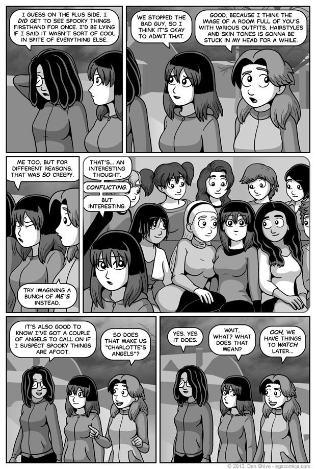 I mentioned in a previous comic commentary that I would later reveal why Charlotte is named Charlotte, and that later is now! And it's just a reference to Charlie's Angels. EXCITEMENT!