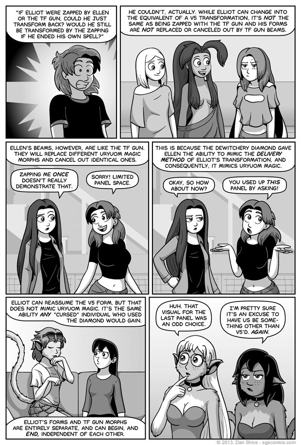 You might have noticed Elliot wasn't in that list. I didn't bother considering possible changes to Elliot's design as of this comic because his natural form was only in one panel and he's in a weird pose with a weird expression in it.
