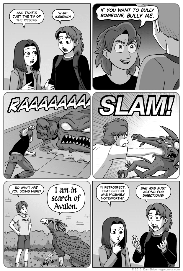 For panel two, I clearly wanted to address Elliot's not-so-subtle approach to bullies. There wasn't really a good previous scene that clearly represented that in one panel that I wanted to use, however, so I went with something new.