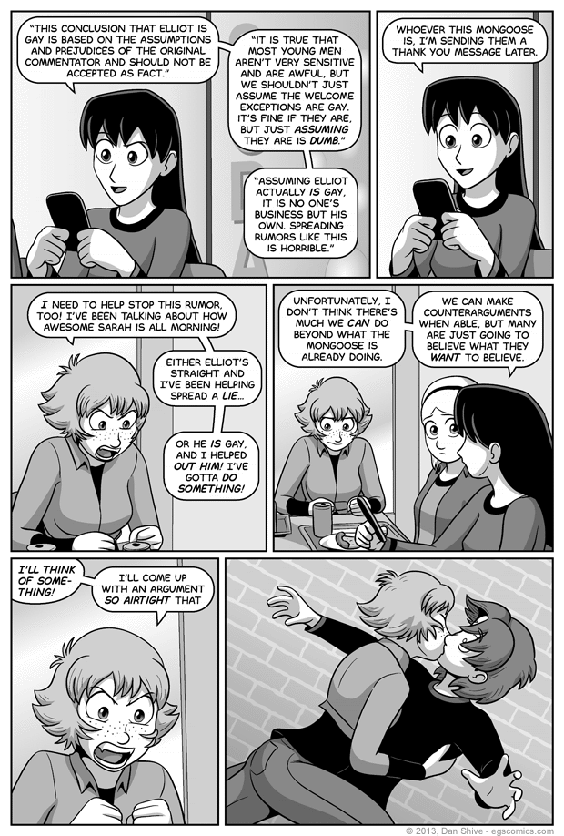 Something I forgot with the previous comic (aside from Catalina's freckles, which I will totally fix later, if not prior to you reading this), was to talk about how awesome Tuesday was in terms of reader feedback. After I posted Tuesday's comic, a number of people let me know that they suspected Diane of being responsible for the comment that started the rumor.