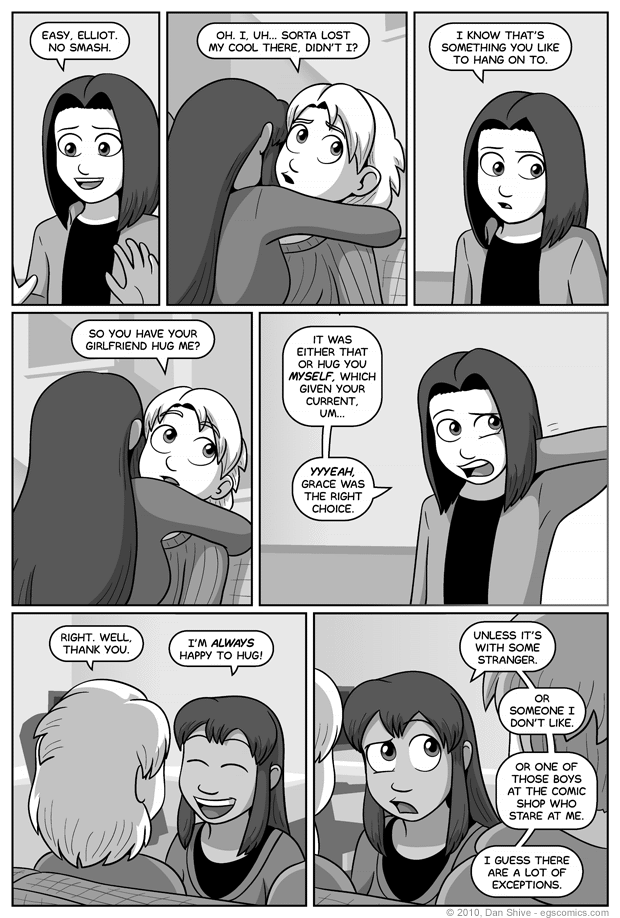 Yeah, I don't have much else to say about this comic. It's seven panels, but it feels shorter than that somehow. It's like a four panel comic that became seven by virtue of Elliot and Tedd being positioned in a way relative to each other that makes it difficult for them to share panel space.