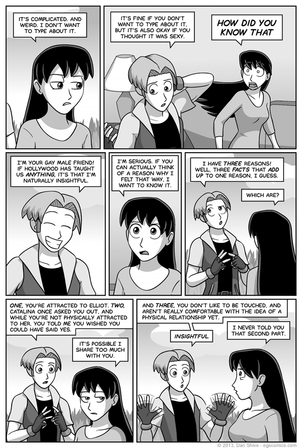 "I used my magical gayness to deduce that someone who doesn't like being touched might not be ready for activities that involve touching!"