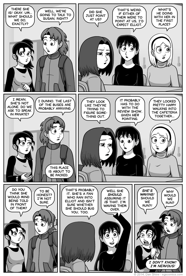 I recently confessed via Twitter confusion over the fact that some readers have been assuming that it's currently lunchtime when it is actually prior to even their first class starting. I noted that I felt Elliot was wearing his coat and had not yet put it in his locker should have made it obvious even if one had forgotten his mentioning what time of day it was.