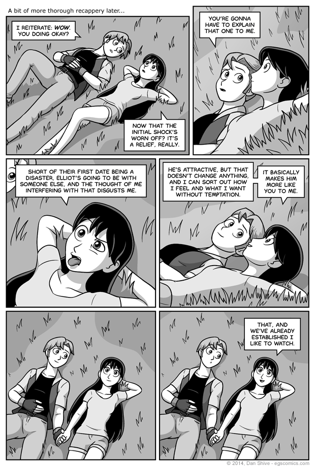 What is with all this open communication?! It has to stop. This comic needs wacky scenarios with tons of unnecessary lying, STAT. Tedd, bake a cake. Grace, EAT THAT CAKE, and blame it on Sarah. No, I don't know why you would do that. It's just how these sort of things are supposed to work, dammit!